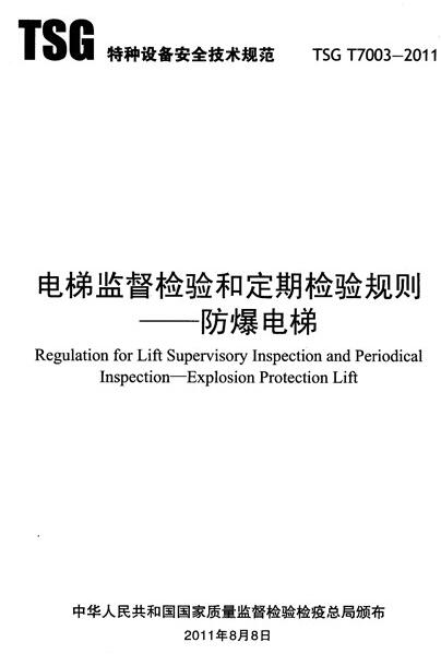 TSG T7003-2011 《電梯監(jiān)督檢驗(yàn)和定期檢驗(yàn)規(guī)則-防爆電梯》
